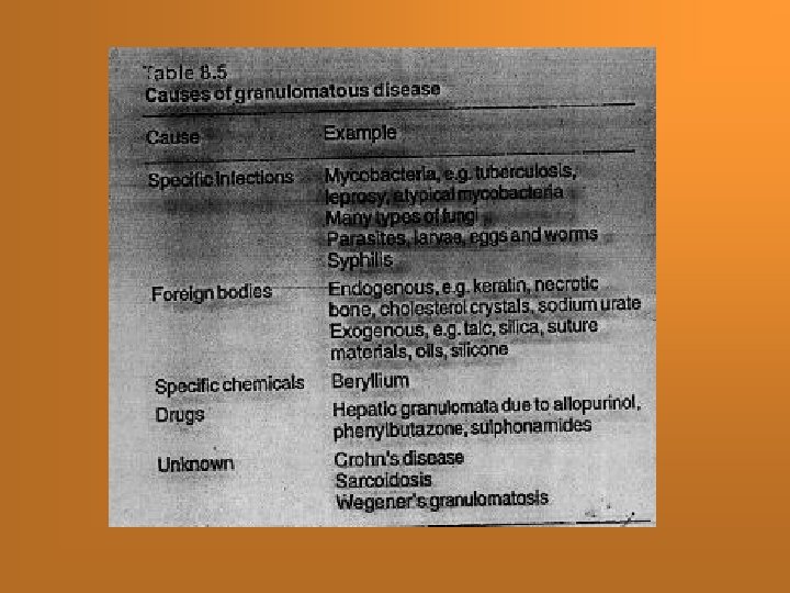 Granulomatózní zánět • Forma chronického zánětu • Převažují aktivované makrofágy ve formě epiteloidních buněk • Granulomy ü KCT ü Mikroorganismy (plísně) ü Granulomy po aplikaci léků a chemikálií ü Granulomy u chorob (Crohn, Wegenerova granulomatóza) ü Granulomy u specifického zánětu (TBC, sarkoidóza)