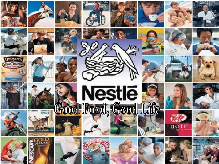 PROMOCION • Pag. Web www. nestle. com • Vayas Publicitarias • Anuncios en revistas • Campañas publicitarias: • Las dos campañas más relevantes lanzadas recientemente son “Nestlé, Good Food – Good Life” (Buen Alimento, Buena Vida) forma parte de su visión-misión y “Desayuna con Nestlé” promovía una alimentación nutritiva al inicio del día. • Además, Nestlé mantiene una intensa actividad benéfica y de colaboración con los distintos estamentos de la sociedad