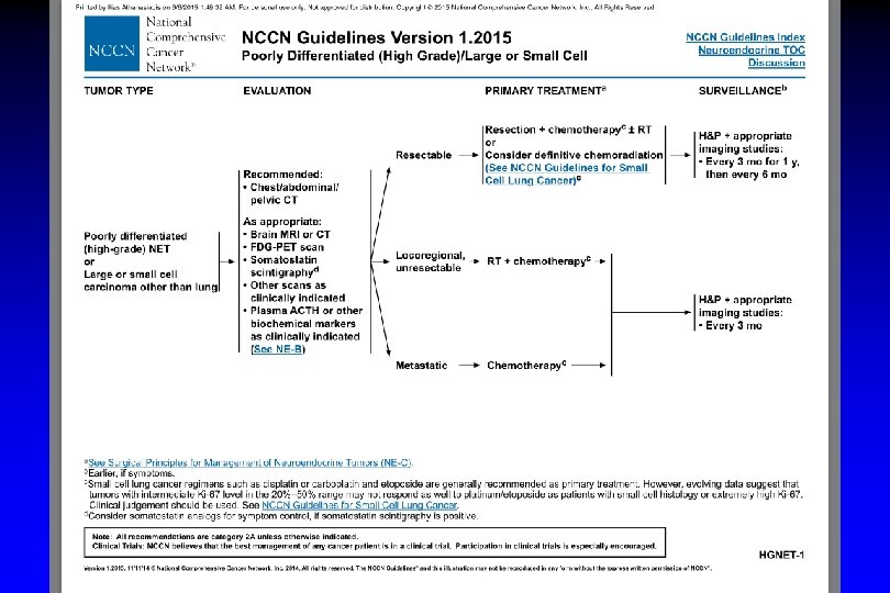 Neuroendocrine tumors (NET) • NETs of the gastrointestinal tract, lung and thymus • NETs of the pancreas • NETs of unknown primary • Poorly differentiated high grade NETs/ large or small cell