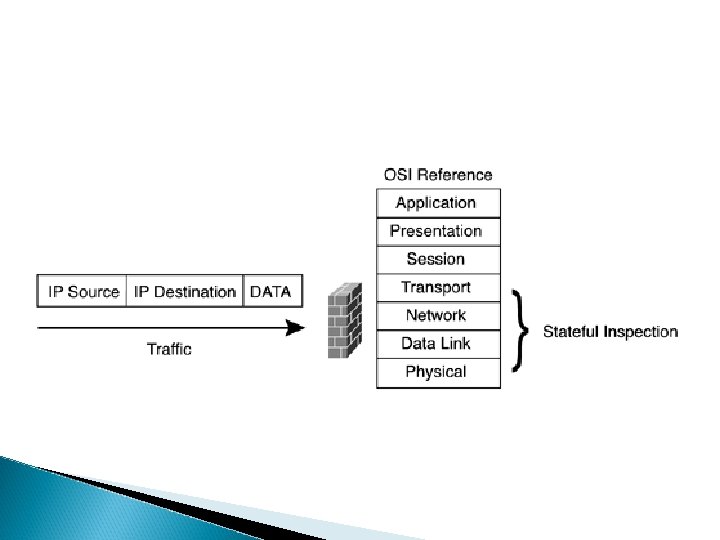 Metode Inspeksi pada Firewall Packet filtering or stateless filtering Stateful filtering Deep packet layer inspection