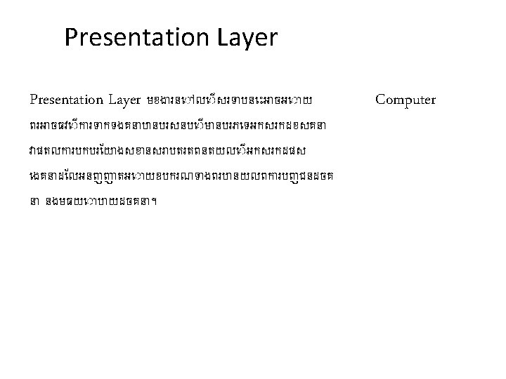 Introduction(cont. ) • Topology ‐ Physical and logical network layout – Physical – actual layout of the computer cables and other network devices – Logical – the way in which the network appears to the devices that use it • Common topologies: – Bus, ring, star, mesh, tree and wireless