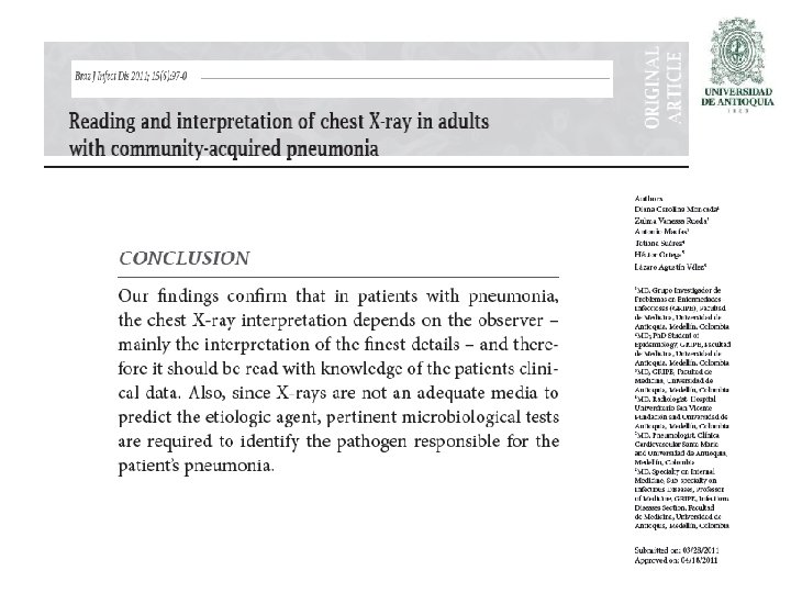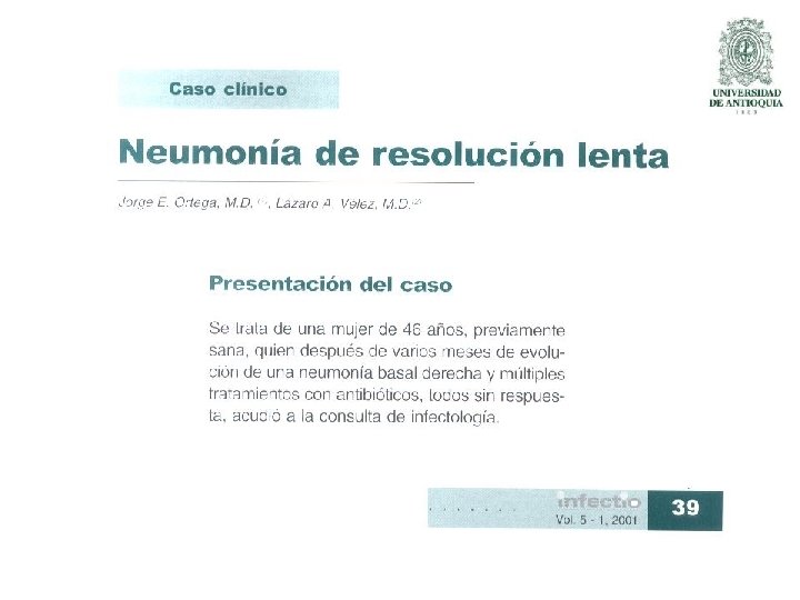 Etiología de la NAC en 311 pacientes hospitalizados. Valle de Aburrá 2005 - 2006 n Hubo evidencia de infección reciente por: n n n Bacterias atípicas: 83 pacientes (26. 7%) Virus respiratorios: 60 casos (19. 3%) Se identificaron como agente único: n n Bacterias atípicas: 45 pacientes (14. 5%), Virus respiratorios: 21 casos (6. 8%).