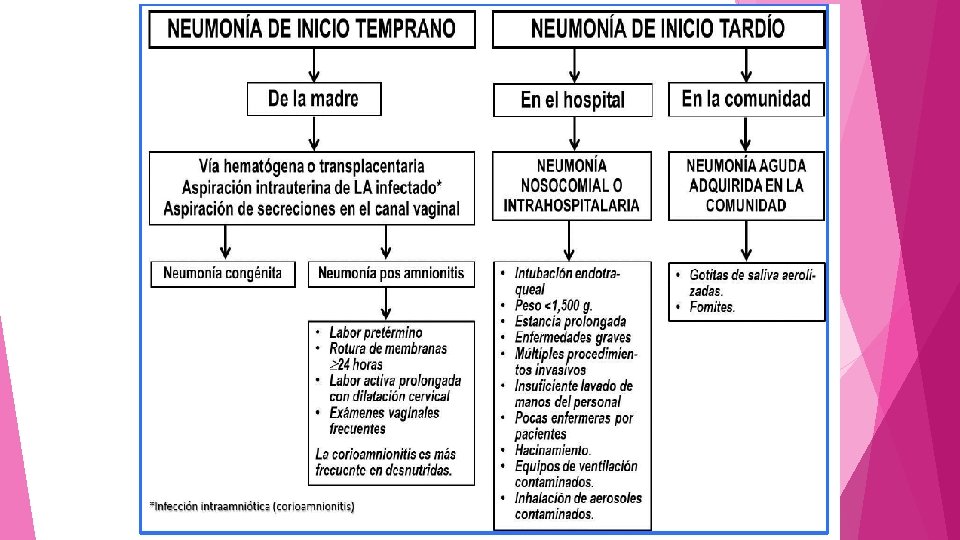 CLASIFICACION Neumonía de inicio temprano, generalmente dentro de los tres días del nacimiento, se adquiere de la madre.