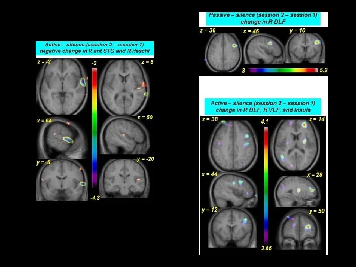 EXPERIMENT 3: Modulation of functional network for singing after auditory training (Zarate et al. , in prep) HYPOTHESES: l Auditory training with pure tones ¡ ↑ micromelody discrimination (pure- and vocal-tone) ¡ ↑ vocal accuracy l Melodic singing requires audio-vocal integration: ¡ similar regions seen in Exp 1, 2 ¡ auditory working memory (e. g. , inf. frontal) l Modulation of regions after training: ¡ singing network ¡ audio-vocal integration