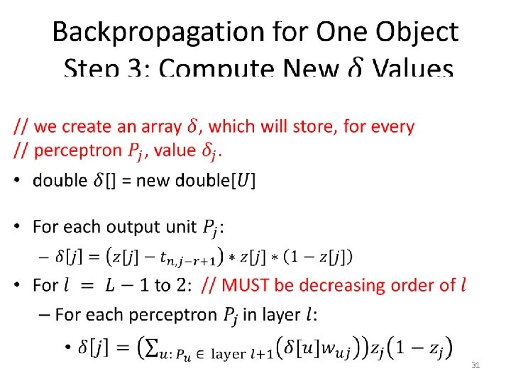 Backpropagation for One Object Step 2: Compute Outputs • 30