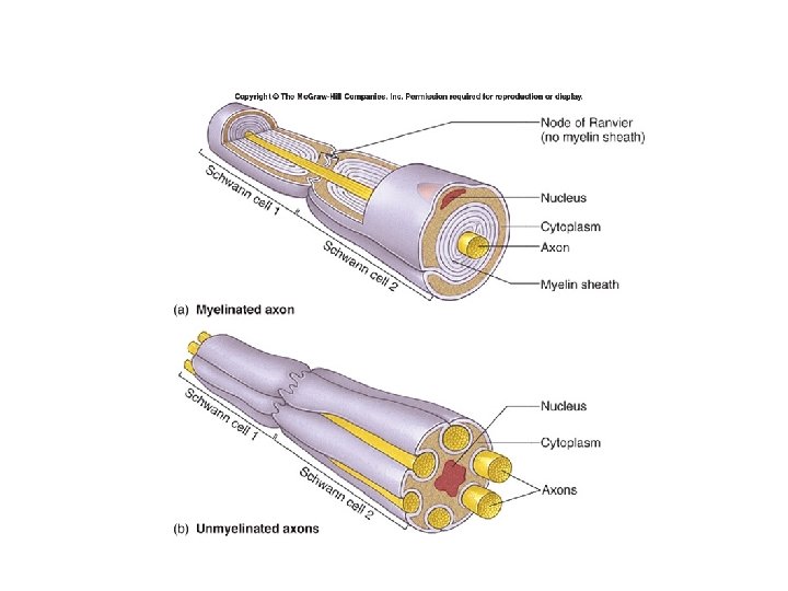 • Generation of action potential – Unmyelinated • Same as muscle – Myelinated • At node of Ranvier – Concentrated ion channels