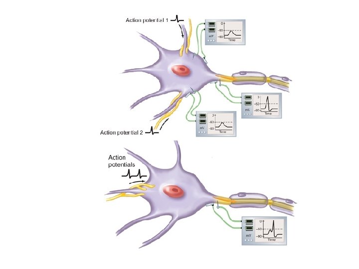 • Generation of action potential – Excitatory vs. inhibitory stimulation • Depends on summation of stimulation by these fibers