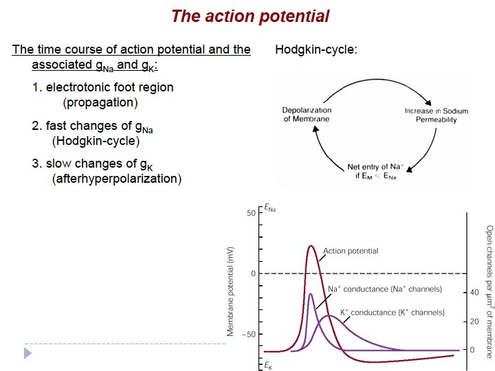 the peak of the action potential is determined by – the sodium equilibrium potential – the time course of sodium channel inactivation • The peak of AP approaches the sodium Nernst-potential (~ +60 m. V)