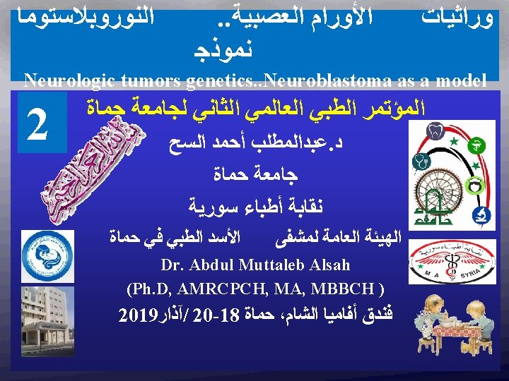 ﻭﺭﺍﺛﺔ *Some patients inherit a genetic predisposition to neuroblastoma due to germline mutations. *Others develop sporadic disease that may result from either : germline or somatic mutations.