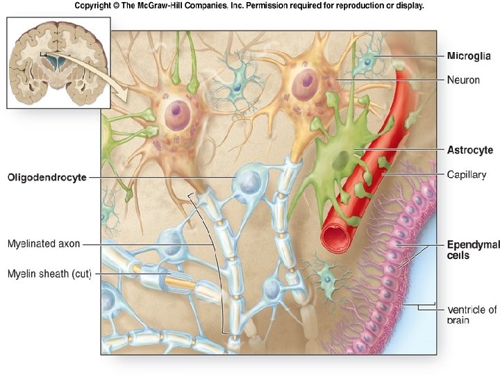 Functions: • Responsible for the fixation of the neurons within the nervous system. • Phagocytosis. • Nutrition. • Myelin sheath formation in CNS. • They acts as a “set point” for regulation of various neural control mechanisms because of their fixed metabolism.