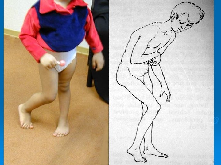 Deformities Lower limb : Ø Hip adduction/flexion/internal rotation Ø Knee flexion Ø Feet equinus / varus or valgus Ø Gait scissoring Spine : kyphoscoliosis