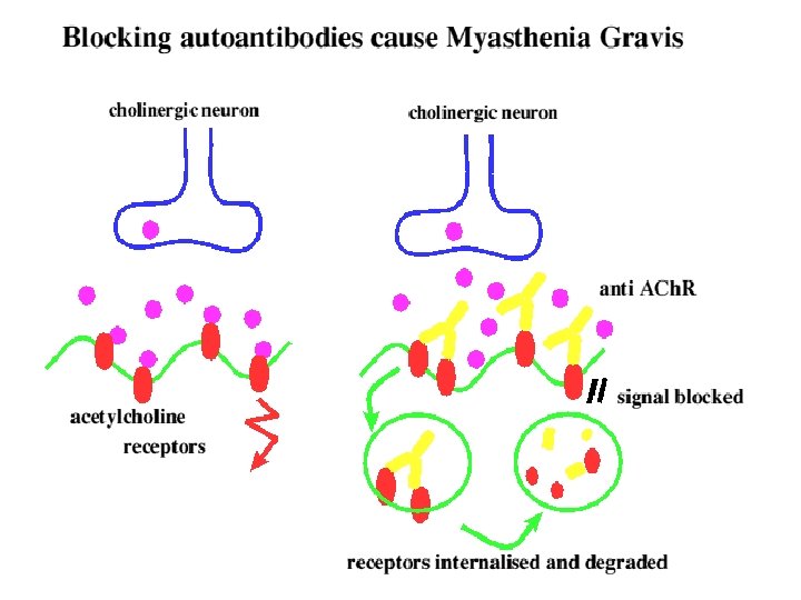 Myasthenia Gravis o Disease course marked by exacerbations and remissions n n o Infection, stress, surgery, pregnancy have unpredictable effects, but often cause exacerbations Antibiotics can aggravate weakness Diseases considered AI in origin often coexist n n Decreased thyroid function RA SLE Pernicious Anemia