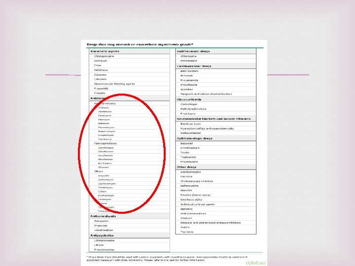 Cont. Triggered by infections or certain medications. A list of medications that affect the NMJ transmission should be given to MG patients to avoid or to use with caution. Dr. Nuha Alkhawajah