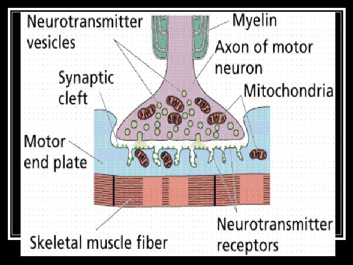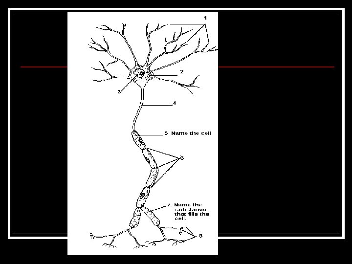 Neuron Structure Neurons n Three classified types of Slides: 29 Download presentation Neuron Structure Neurons n. Three classified types of neurons: n. Sensory Neurons n. Associative (inter neurons) n. Motor Neurons Sensory Neurons n. Transfer message from receptors PNS to CNS. (3 types of receptors) Sensory Neurons n. Exteroceptors: External, or on surface. (eyes, ears, skin ~ sense environment) Sensory Neurons n. Propioceptors: Involved in balance and tension (muscles) Sensory Neurons n. Interoceptors: Internal (digestion, hunger, excretion, heart, breathing) Inter-neurons n. ONLY IN CNS!!!! n. Link sensory to motor Motor neurons n. Message from CNS to effectors (muscles, glands) n. Let us put it together! n. Roman Candle time. NEURON STRUCTURE COLOR CODE TIME n. PLEASE COLOR CODE THE NEURON ON PAGE 4. n. Color d, g, h, I, j, k, l and cell body CELL BODY n. AKA Soma n. Contains nucleus, neuroplasm, nissl bodies. Nissl Bodies n. Clusters of ribosomes (energy/protein makers) Dendrites n. Receive signals, impulse carried towards cell body. n. Afferent process. (Carry toward) Axon n. Carries outgoing signals (away from cell body = Efferent process n. Can branch to touch many fibers. Myelin n. Insulated lipid that improves impulse speed. n. White in appearance Myelin n. A. White matter: White appearance from myelin CNS Myelin n. B. Gray matter: No myelin, outer part of brain (cortex) and some CNS Neurilemma n. Thin membrane that surrounds axon in PNS. n. If nerve has neurilemma it CAN regenerate! Node of Ranvier n. Gaps between glial cells where myelin is not complete. n. Saltatory conduction= jump from node to node. Schwann cell n. Neuroglia cells which add myelin to axons of the PNS