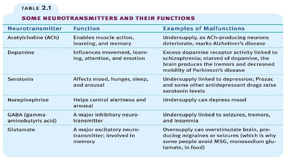 E. Across the Synapse: Once the action potential has been realized, the terminal buttons release the neural transmitters to the next cell They must cross the synapse to the dendrites of the next neuron If they fail to release the information, the command is stopped within that neuron