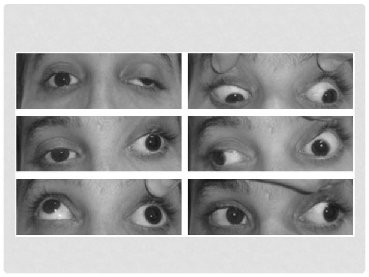 EXOTROPIA EN PARÁLISIS III PC • Siempre van a manifestar diplopia • En caso de ptosis palpebral podría pasar desapercibida • La diplopia puede disminuir girando la cabeza hacia el lado sano • El ojo enfermo se encuentra apuntando hacia temporal • El ojo sano puede aducir sin problemas