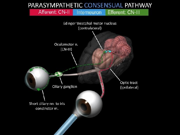 Efferent system • 1) Cranial neuropathies (III, IV, VI) • 2) Pupillary abnormalities
