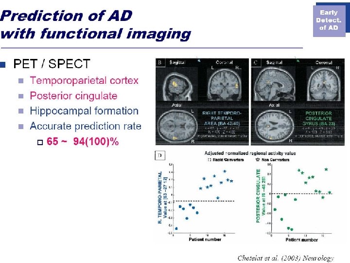 Phosphorylation of tau proteins is developmentally regulated è Phosphorylation of tau is high in the fetal period (Riederer et al. , ‘ 01) and decreases with advancing age mainly due to phosphatases activation (Mawal-Dewan et al. ‘ 94; Dudek & Johnson ‘ 95; Rösner et al. , ‘ 95) è However, after about 35 years of age plasticity burden in entorhinal cortex and hippocampus, together with additional genetic (APP, PS-1, PS-2, CO-II, APOE…) and environmental (head trauma) factors that interfere with synaptic plasticity, cause the phosphorylation of tau to increase again ‘Normal’ aging (brain of cognitively normal subject) ECx CA 1 Hof et al. ‘ 04 AT 8 ICC