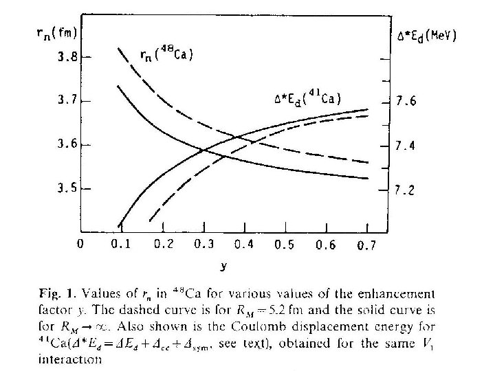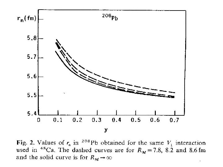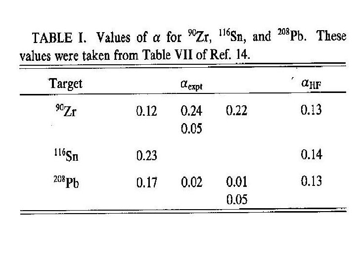 Values of rn-rp Parameterization calculations have been made for 48 Ca and 208 Pb using a parabolic Fermi for the proton distribution, with c=3. 74 fm, a=0. 53 fm and ω=-0. 03, leading to rp = 3. 482 fm for 48 Ca, and c=6. 66 fm, a=0. 50 fm and ω=0 leading to rp = 5. 483 fm for 208 Pb