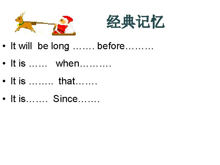 6. Between the two generations, it is often not their age, _____ their education that causes misunderstanding. 9. Reality 18. It _____ is not we had the way stayed youtogether wish things for ato couple be, nor of the weeks way____ they. I appear found we to had be, ____the a lot in common. way they [2007 actually 浙江卷]are. [2007 全国卷I] [2007 A. was 湖南卷] until; when B. was until; that C. wasn’t until; when D. wasn’t until; that A. like B. as C. or D. but 经典题巩固 C 1. It is imagination ___makes the world colorful, full of vigor and vitality. [2007 上海春] A.where B.what C.that D.when 2. It ____ we had stayed together for a D couple of weeks ____ I found we had a lot in common. [2007 浙江卷] A. was until; when B. was until; that C. wasn’t until; when D. wasn’t until; that