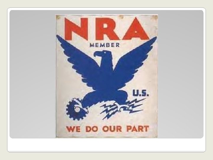 � SEC- created to regulate trading on Wall Street � FDIC- insure each person’s money up to $5, 000 � 21 st Amendment- repeals the 18 th Amendment � Four day bank “holiday” – shut down countries banks in order to give the government time to check on each standing bank � Emergency Banking Act: shut down poorly function banks, attempted to reorganize them and then reopened banks that were strong enough to stand. Other First New Deal Ideas
