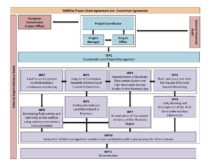 OBJECTİVES MARsite aims to: 1) harmonize geological, geophysical, geodetic and geochemical observations to provide a better view of the post-seismic deformation of the 1999 Izmit earthquake (in addition to the post-seismic signature of previous earthquakes), 2) investigate loading of submarine and inland active fault segments and transient preearthquake signals, related to stress loading with different tectonic properties in and around Marmara Sea. 3) explore earthquake/landslide triggering mechanisms and tsunami hazard modelling. 4) obtain rapid source-mechanism solutions and slip models, 5) develop new algorithms for early warning and rapid-response studies, 6) establish a risk management cycle with the creation of a link between the scientific community and end users. 7) to develop novel geo-hazard monitoring instruments including high-resolution displacement meters, novel borehole instrumentation and sea-bottom gas emission and heat-flow measurement systems, in association with the relevant industrial sectors and SMEs.