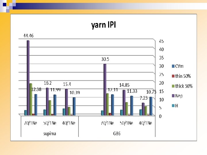Yarn IPI 300 250 200 150 100 50 0 CVm G 88 120 Ne thin 50% G 94 120 Ne thick 50% G 86 120 Ne Nep SUPIMA 120 Ne H