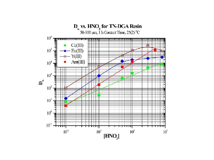 Diglycolamide (DGA) Resin Extractant: N, N, N’-tetra-n-alkyl-3 -oxopentanediamide (TN-DGA) N, N, N’-tetra-(branched-alkyl)-3 -oxopentanediamide (TB-DGA) Extraction Equilibrium: 3+ M - + 3 NO 3 + 3 E M(NO 3 )3 E 3 M = Ln, An
