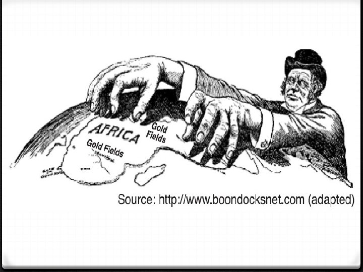 Reasons Given vs. Actual Reasons 0 “White Man’s Burden” 0 Desire to make the world a better place 0 Duty to spread Christianity 0 Wish to civilize lesser races 0 Responsibility to spread medicinal knowledge/aid 0 Desire to obtain more land 0 Need for raw materials 0 Convenience of cheap labor 0 $$$$ 0 Nationalism 0 Glory 0 Need for strategic trade and market ports