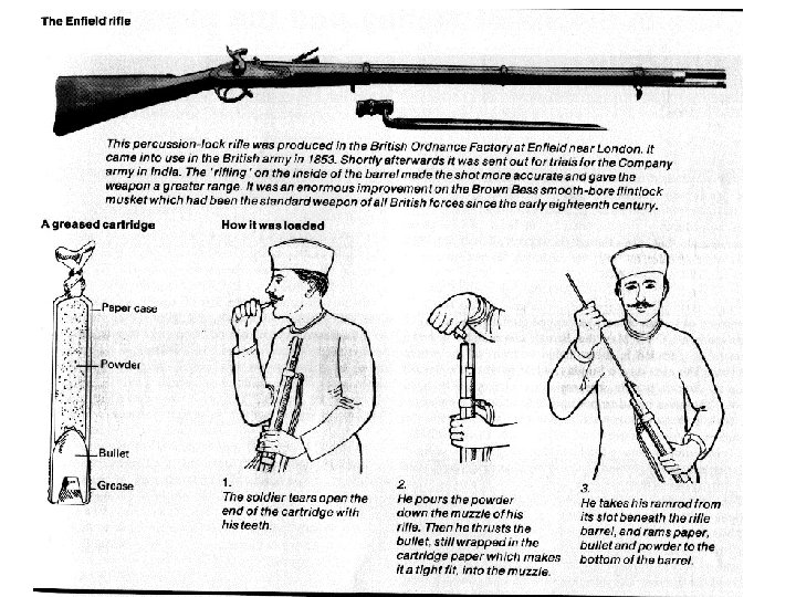 III. The Sepoy Rebellion A. Britain makes some unwise decisions: 1. Required Sepoys (Indians serving in army) to serve anywhere, either in India or overseas. Problem: For high caste Hindus, overseas travel is against their religion 2. New law allowed Hindu widows to remarry. Problem: Hindu law forbids remarriage 3. New rifles issued to Sepoys Big Problem: Cartridge tips greased with animal fat(cows sacred to Hindus; Muslims cannot eat pork)