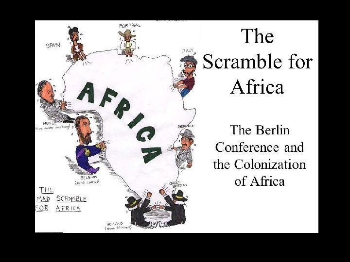 The Scramble for Africa, 1870 -1914 • Intentionally imperial and involved direct, western control • Goal: access to valuable natural resources – rubber, oil, diamonds, gold • BERLIN CONFERENCE 1888 - Bismarck & other European nations map out and claim colonial boundaries to avoid European war • German Expansion in Africa- short lived, involved few Germans, and produced no significant economic gain