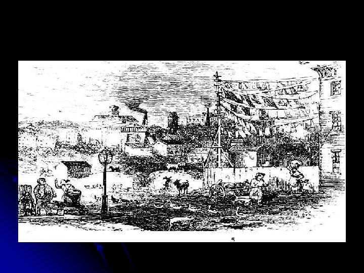 Industrial Cities Industrial Revolution brought rapid urbanization or movement of people to the cities l Need for workers in factories drew workers from rural areas l People would pack into tiny rooms in tenement buildings l The tenements had no running water, foulsmells and garbage rotted in the streets l