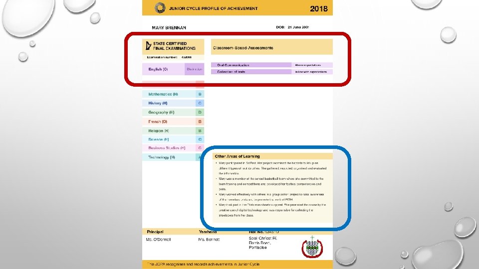 REPORTING 1 st Year 2 nd Year 3 rd Year Christmas House Exam No Christmas Exam where subject has a CBA. Summer House Exam No Summer Exam where subject has a CBA Mock Exam All others Summer Exam Junior Cert/Cycle Final Examination Reporting Results available on Eportal. JCPA in 5 th Year Parent/Teacher Meetings each year. JCPA in the first term of 5 th Year/TY containing. • Final Examination results. (Assessment Task + Final written Examination) • CBA descriptor. • Other Areas of Learning. Extra/Co-Curricular activities.
