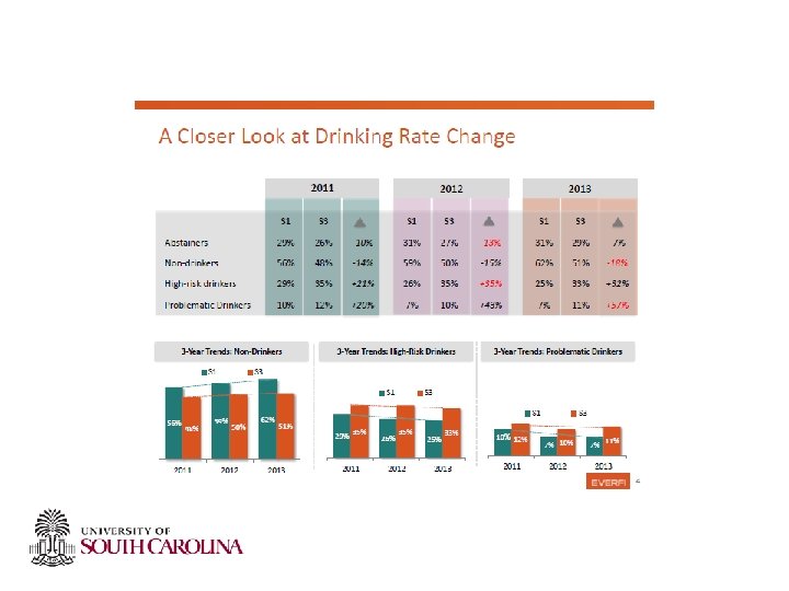 Game Day Task Force • • Anna Edwards Long Term Goal: By March 2016, reduce prevalence of drinking on game day by 5% Objectives: reduce social access and availability, consistently enforce policies and laws, and change social norms Strategies: data collection on tailgate policies, student drinking patterns, and law enforcement focus groups, collaboration with FSL, USCPD, OSC and SAPE to enforce policies Future Initiative: agreement to continue collaboration