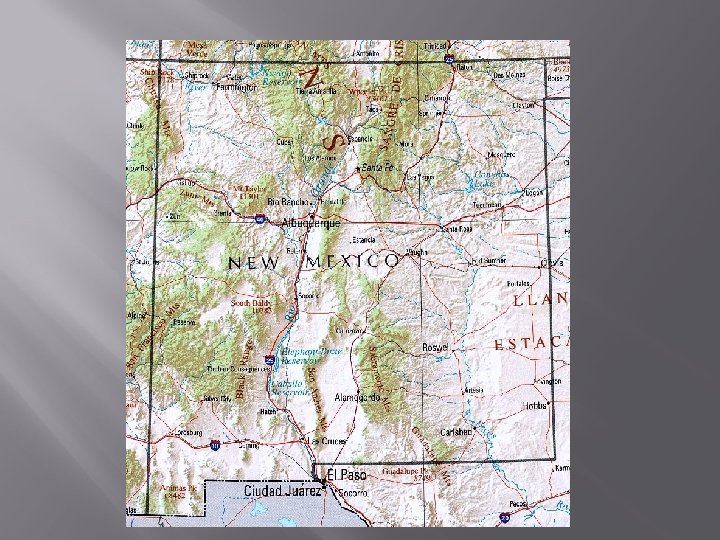 Post War New Mexico � Gold, silver and copper rushes in the south of the territory and in the San Juan basin created wild west conditions. � Larger numbers of Anglos attracted to New Mexico, for mining, lumber and cattle ranching. � Let to huge fights over land with Texas cattlemen occupying ranches in the Pecos valley and the Sacramento mountains. � The Lincoln County war between Texans, carpetbagger newcomers and local elites. And the Santa Fe ring.