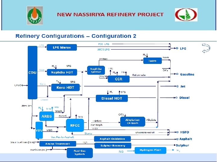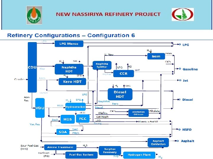 Introduction: New Nassiriya Refinery is a grassroots Refinery to be located near Nassiriya in southern Iraq (approx 200 km from Basrah and approx 300 km from Baghdad) with a capacity of 300, 000 BPSD. . ………………. The Refinery is to be designed to be capable of processing 300, 000 BPSD of Nassiriya Mishrif crude oil or a 50/50 mix of Nassiriya Mishrif (27. 8) /Basrah regular (32. 5) crude oils. ……………………… The Refinery design is based on meeting the more stringent of International specifications (Euro IV, except Euro V for sulphur content for white oil products) or local Iraq specifications.