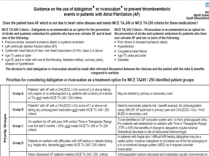 • Importance of stroke prevention in NV-AF patients • ✤ Overview of new treatments available • ✤ Efficacy, clinical & safety data • ✤ Treatment pathways and guidelines (BNSSG) • & • REAL LIFE CASES
