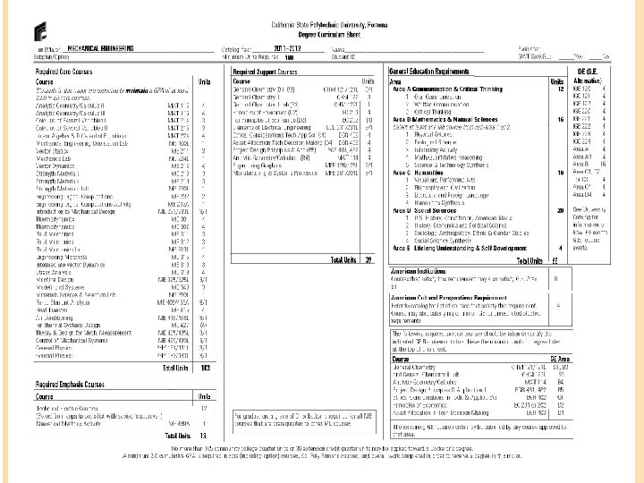 DEGREE AND MAJOR REQUIREMENTS Major Requirements Curriculum sheet: http: //www. csupomona. edu/~engineering/current/currsheets. shtml Flowcharts & Roadmaps - track progress http: //www. csupomona. edu/~academic/sheets/1314 egr. shtml Degree requirements Engineering majors: ~198 units to graduate