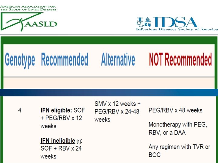 • Inclusion criteria for treatment will be expanded to adapt for more advanced liver fibrosis patients (who will be treated with Interferon free regimen) as defined with the presence of one or more of the following; – Child score up to 8 – Total bilirubin ≤ 3 – Albumin ≥ 2. 5 – Platelet count ≥ 50, 000 – Prtothrombin concentration ≥ 50% – Hemoglobin concentration ≥ 10 mg • Otherwise, waiting for new DAAs combination is advised.