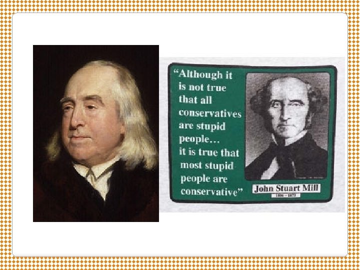 Utilitarianism � Called for some limited government intervention � Goal: “greatest happiness for the greatest number” of society’s citizens ◦ Jeremy Bentham – British philosopher/economist ◦ Does a law or action provide more happiness or pain? ◦ Influenced John Stuart Mill � John Stuart Mill ◦ Liked free enterprise, but argued that the government should help the poor ◦ “The only purpose for which power can be rightfully exercised over any member of a civilized community, against his will, is to prevent harm to others. ” ◦ What kind of laws/actions might Mill have supported?