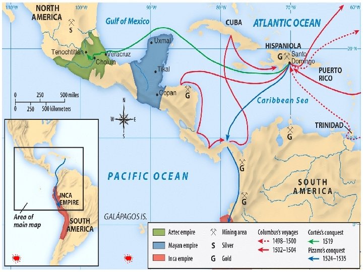 Conquest of Mexico • Hernan Cortes • 1519 • Tenochtitlan – Aztec capital – Decimated and later became Mexico City • “We Spanish suffer from a strange disease of the heart, for which the only known remedy is gold. ”