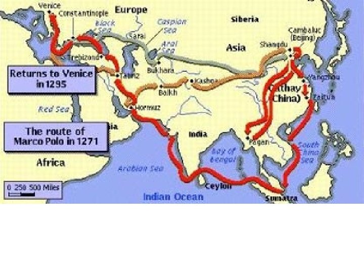 • 1271 – 1295 Marco Polo goes to China • 1453 – Turkish Empire cuts off land route for spices from Asia to Europe • and the search begins….