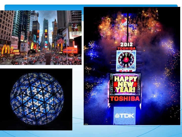 TIMES SQUARE Glavno trgovsko križišče Ima veliko oglasnih panojev Velika turistična privlačnost Približno 39 milijonov obiskovalcev čez vso leto Slavni spust steklene krogle