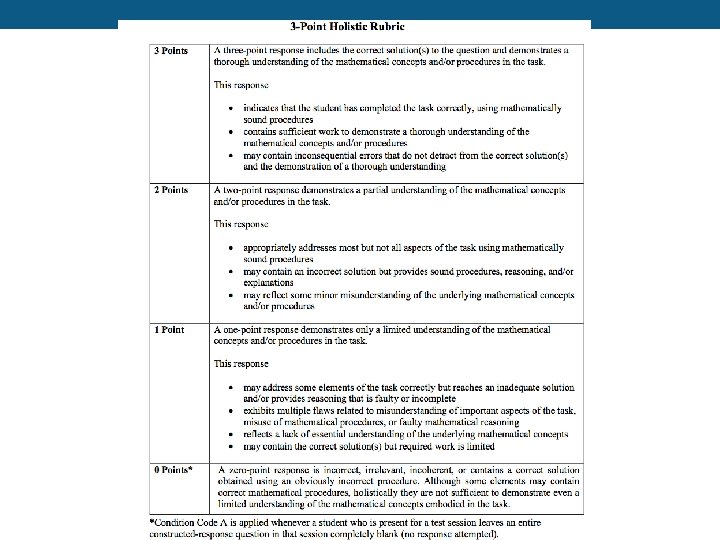 Scoring the Test Percent of Test Points Number and Operations in Base Tens Number and Operations Fractions Operations and Algebraic Thinking Measurement and Data Geometry 3 rd 5 -15% 15 -25% 40 -50% 15 -25% 5 -15% 4 th 20 -30% 15 -25% 5 -15% 5 th 20 -30% 30 -40% 5 -15% 20 -30% 5 -15%