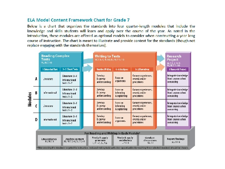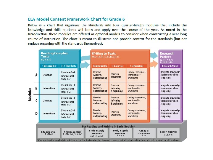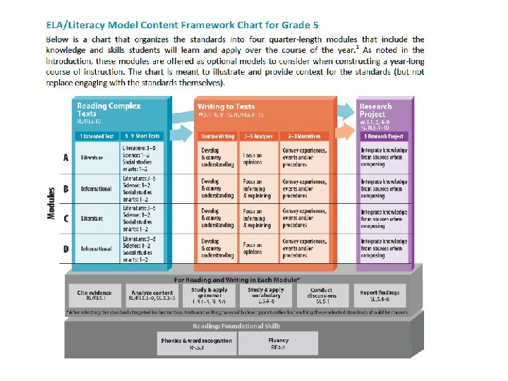 Reading the Common Core carefully- • It’s a FRAMEWORK for curriculum in schools (not all encompassing and not the complete curriculum). This is noted in the Intro of the ELA Common Core State Standards: