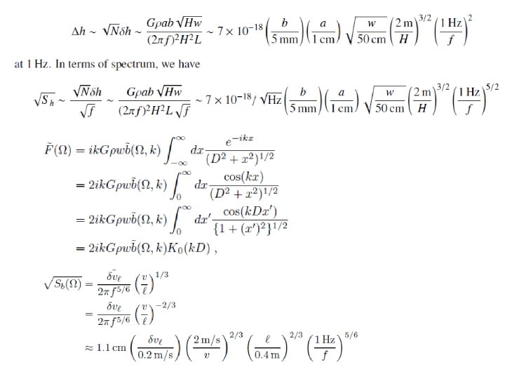 How does the water flow cause NN? [Y. Chen] [A. Nishizawa] H axa mesh Spatial spectrum of height H b w v H Model 2: static pattern flowing at a constant velocity Model 1: uncorrelated height fluctuation Modified Bessel function Model 1 is probably highly overestimate the noise level. An actual noise level would be somewhere in-between.