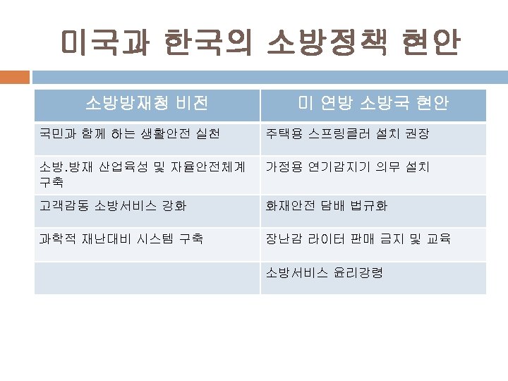 소방정책의 3요소 Engineering Education Enforcement □ 사례비교: 2011 스리랑카 vs. 2012 제주 세계자연보전총회 가. 052 -222 -2121 나. 응급환자 이송체계 다. 올바른 정책반영: What we do, how we do it and why we do it.