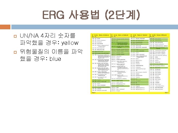 위험물질 파악요령 송장(Shipping Paper) UN/NA Number 관계자의 진술 ERG 책자 활용 NFPA 704 Symbol CHEMTREC Special Warnings MSDS Military Markings Pipeline Markings Container Shapes/Markings Manufacturers’ Labels