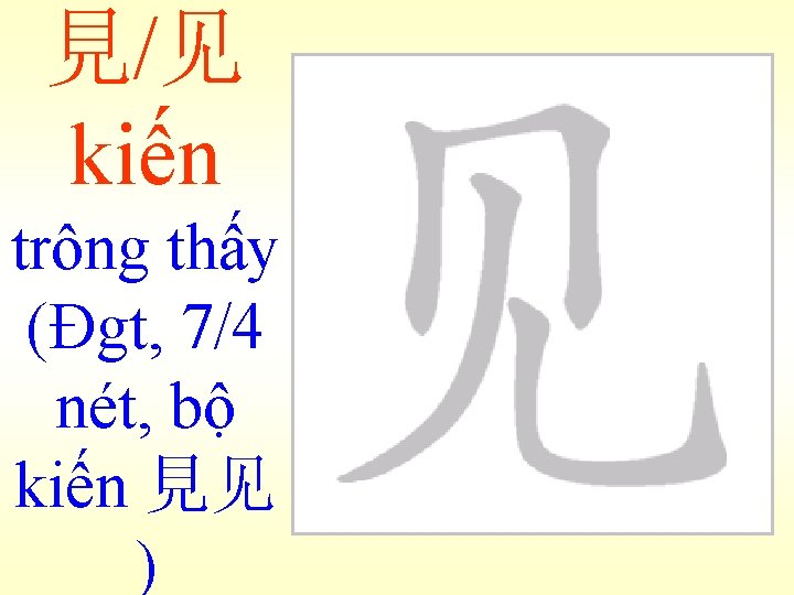 見/见 kiến trông thấy (Đgt, 7/4 nét, bộ kiến 見)