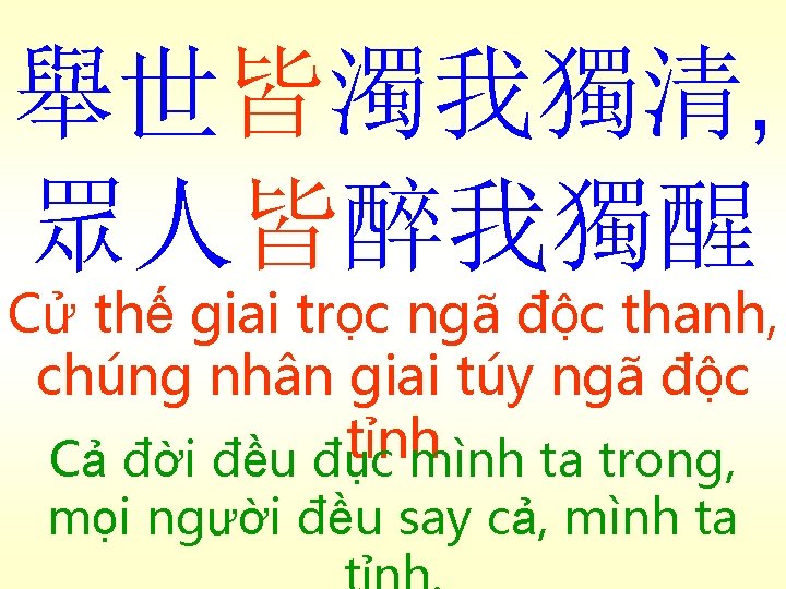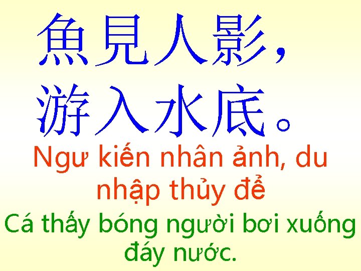 群魚皆出,爭 食不已 Quần ngư giai xuất, tranh thực bất dĩ. Những con cá đều bơi ra, tranh nhau ăn không ngớt.